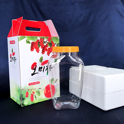 구   성 | 2kg 신형유리병 + 맛깔나는 오미자 2kg 칼라박스 + 식용캡 + 스티로폼