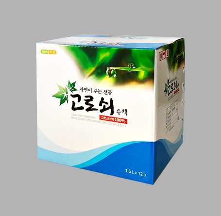 고로쇠수액 전용 박스로 양면코팅(바깥면:비닐코팅/안면:액코팅)되어있어 일반박스보다 습기에 강해 냉장보관이 가능합니다.