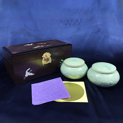 구   성 | 청당초 단지 500g 2P + 고가구 + 금지스티커 + 한지 + 스티로폼+보자기